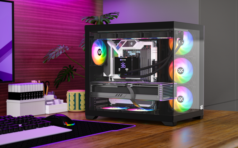 Luce tu equipo con estilo con el XYZ TESSERACT X50, un chasis panorámico de doble cámara diseñado para ofrecer el máximo flujo de aire, una gestión inteligente de cables y un impacto visual impresionante. Con 6 ventiladores A-RGB preinstalados, un panel lateral de vidrio templado sin tornillos y un diseño de refrigeración de GPU invertido, es la base perfecta para juegos de alto rendimiento y sistemas creativos.